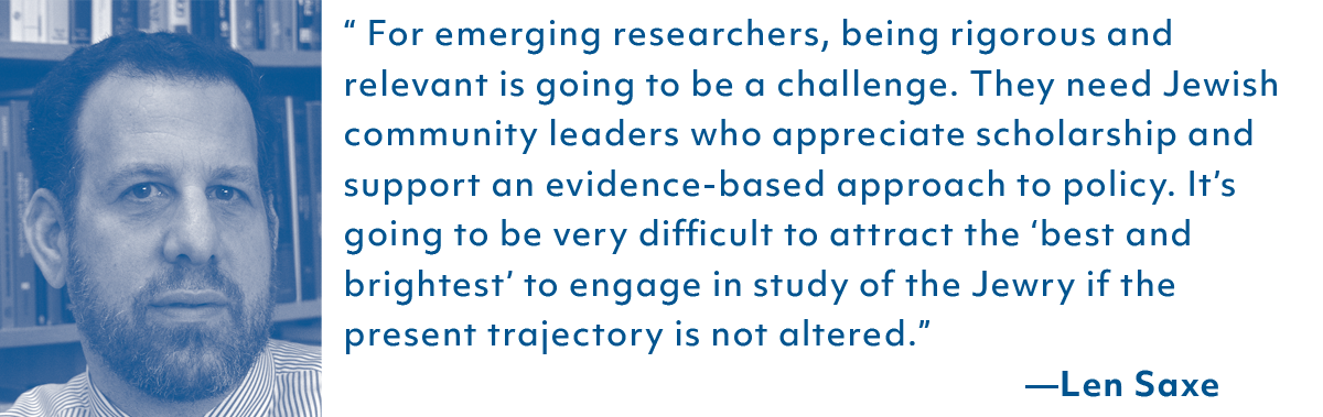 Len Saxe: I have had a long career and there have been many changes to social science research, but what strikes me today is how the social scientific study of Jewry has changed. When I entered the Jewish social research field, it was mired in controversy over demographic studies (some of which I provoked) and intermarriage was like a Sword of Damocles hanging over the Jewish community. In the 21st century, the study of Jewry has become a lot more sophisticated, both with respect to qualitative and quantitative research. But we face a new set of challenges with AI and big data. However, the greatest challenge may be the changing views of science, the politicalization of academic work, and the way in which Jews and Israel are in the center of a social conflict. For emerging researchers, being rigorous and relevant is going to be a challenge. They need Jewish community leaders who appreciate scholarship and support an evidence-based approach to policy. It’s going to be very difficult to attract the “best and brightest” to engage in study of the Jewry if the present trajectory is not altered.